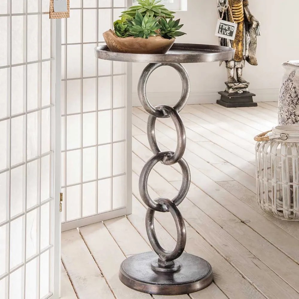 - Ungewöhnlicher Beistelltisch in Silberfarben