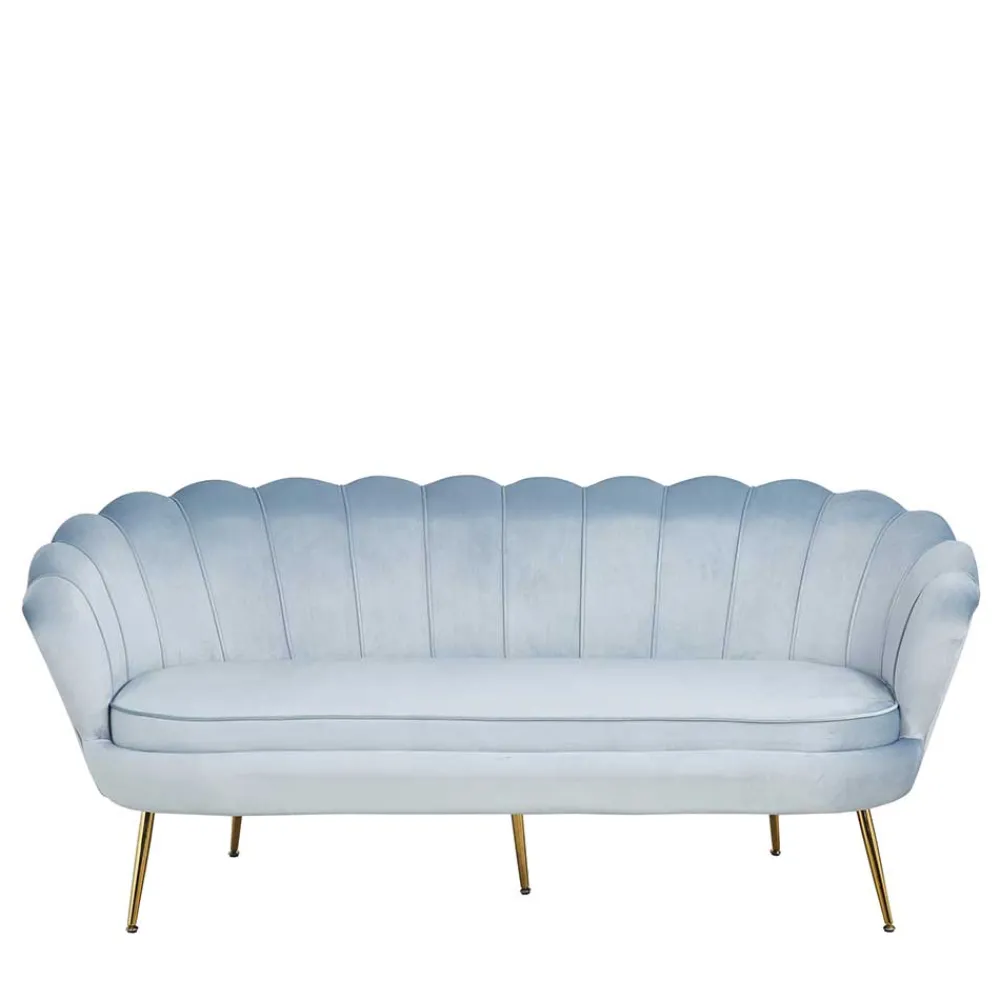 - Edles Dreisitzer Sofa in Hellgrau und Goldfarben