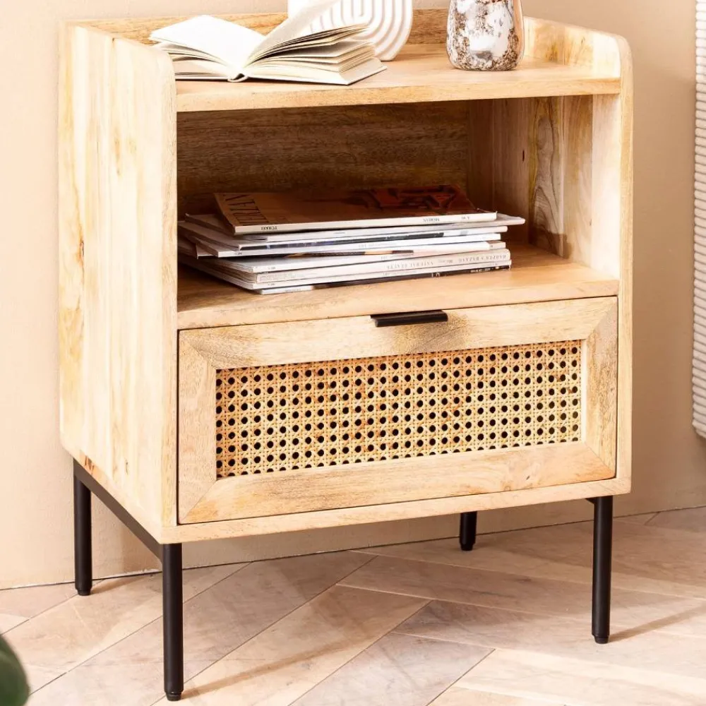 - Aus Mangobaum Massivholz, Rattan, MDF und Metall hergestellt