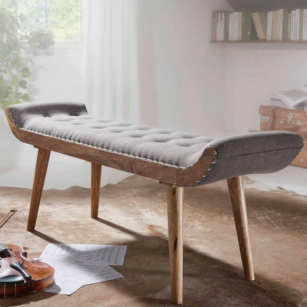 - Sehr ansprechende Sitzbank in Grau und Holz Naturfarben