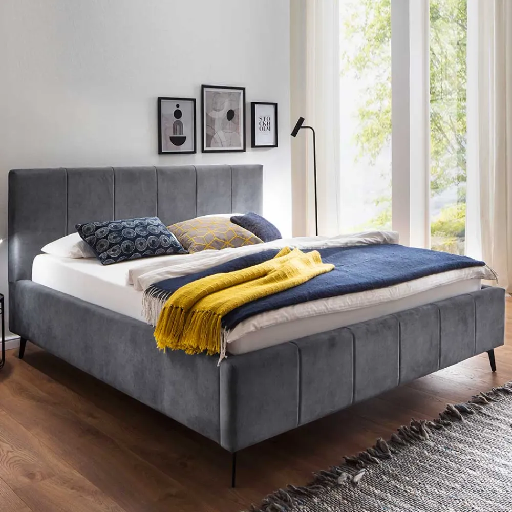 - Trendstarkes Polsterbett in Anthrazit und Schwarz
