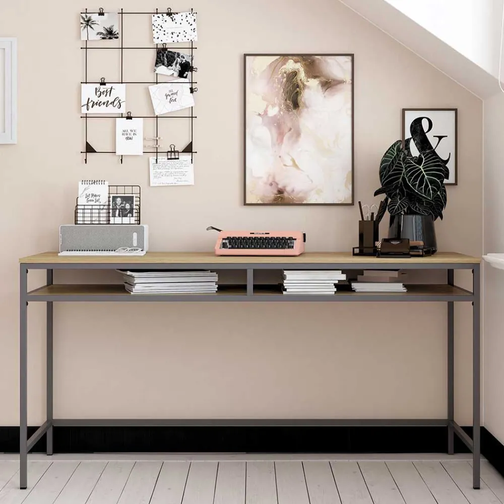 - Geschmackvoller Schreibtisch in Eichefarben und Dunkelgrau