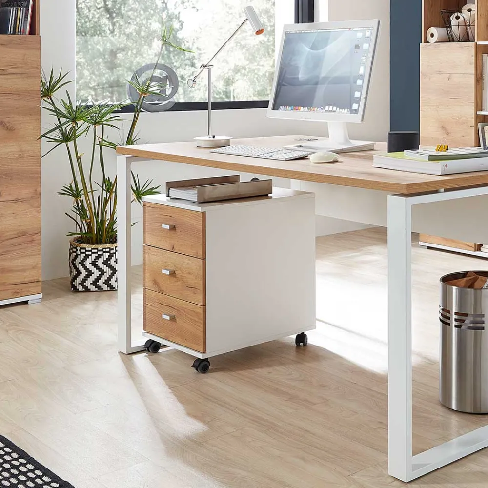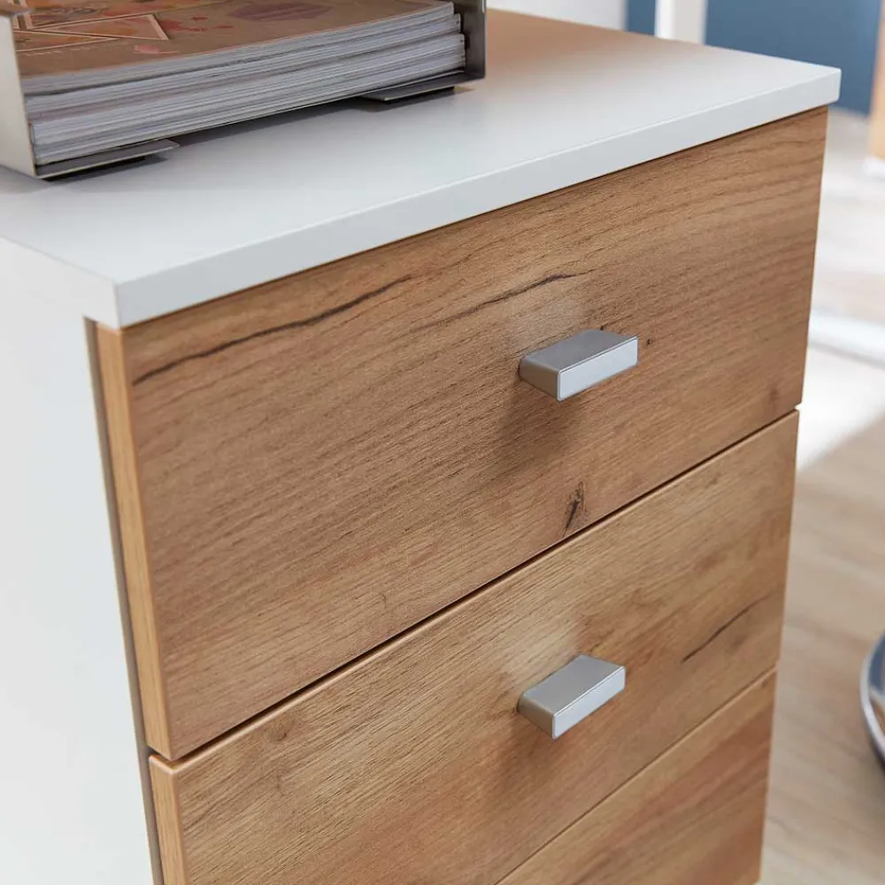 - Funktioneller Rollcontainer in Weiß und Wildeichefarben
