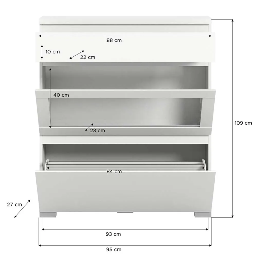 - Unten eine Schuhklappe, Platz für bis zu 6 Paar Schuhe