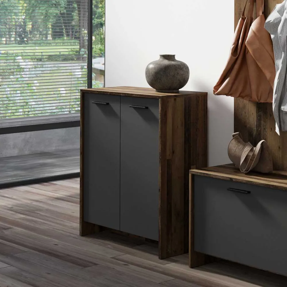- Geschmackvoller Schuhschrank in Altholzoptik und Anthrazit