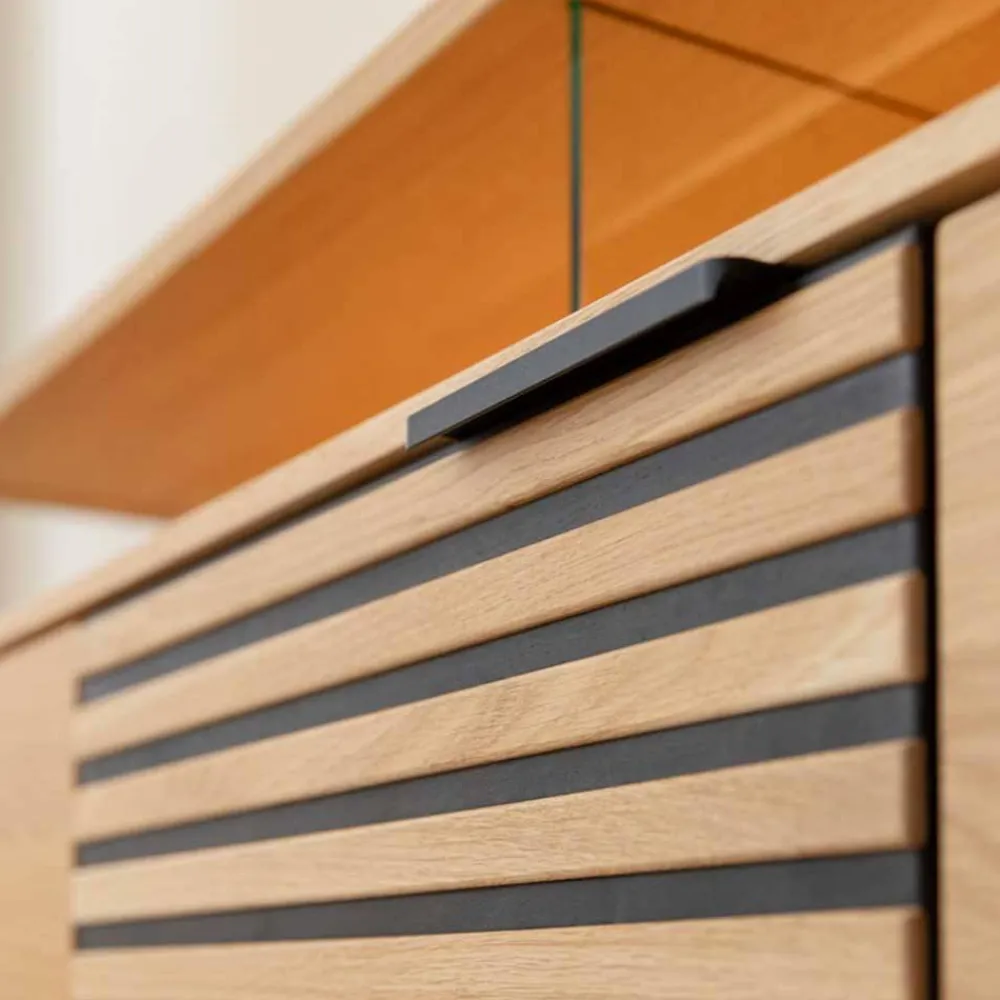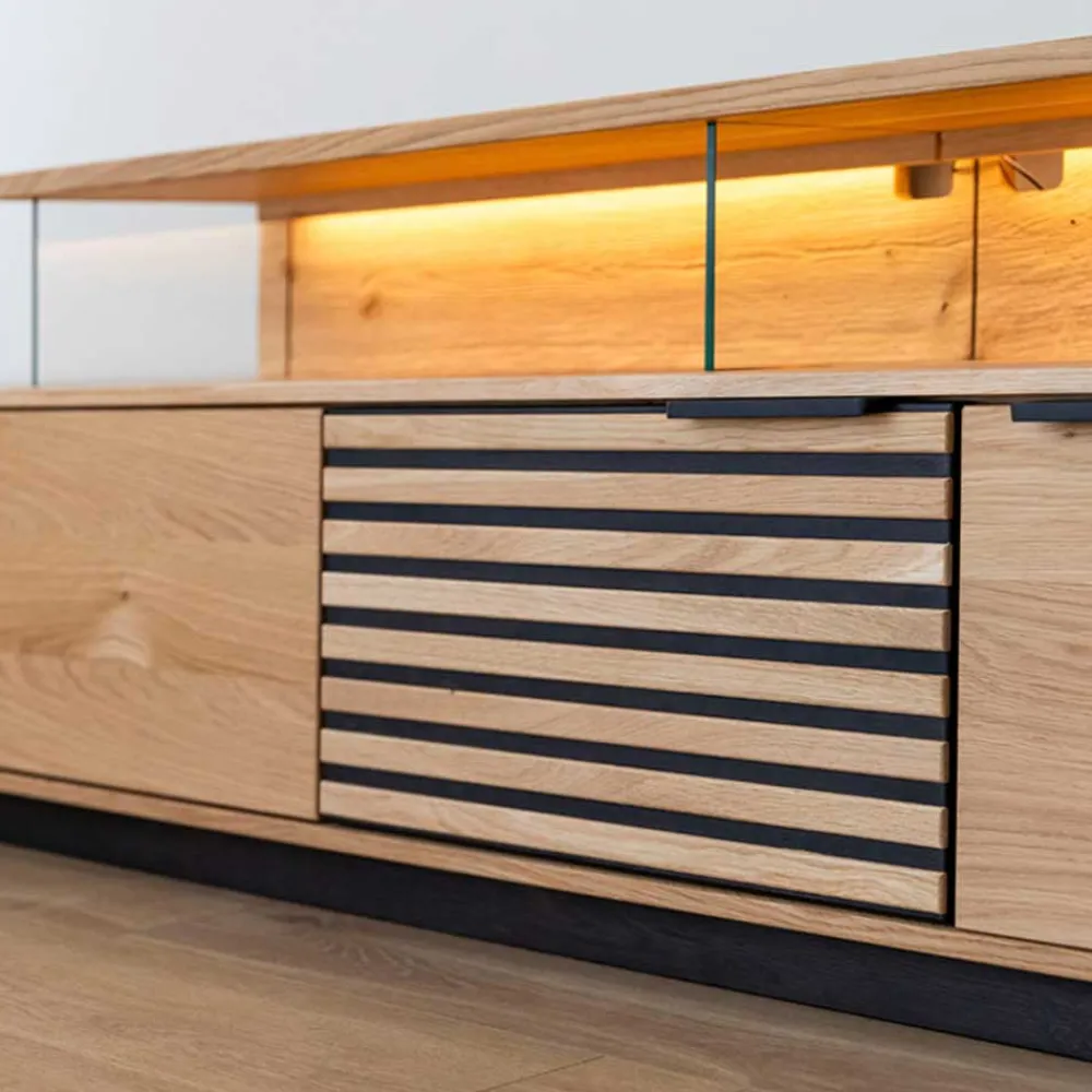 - Hochwertiges TV Lowboard in Eichefarben und Schwarz