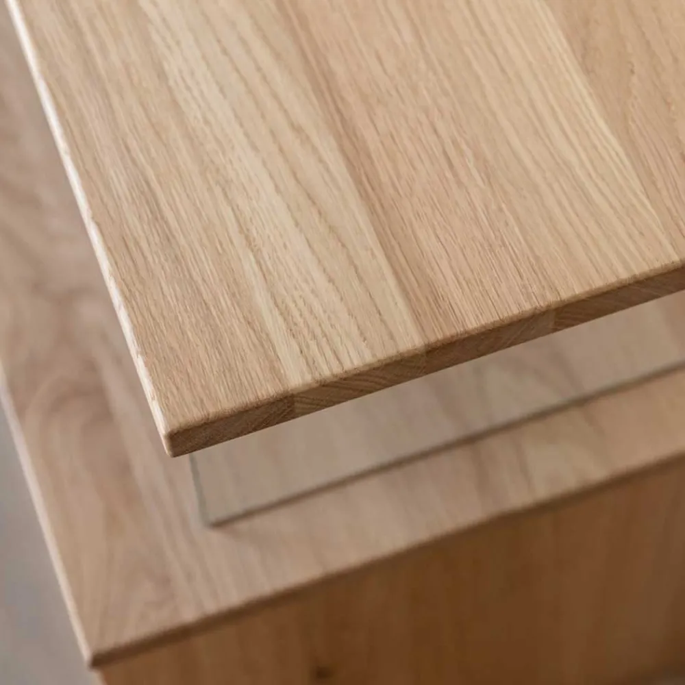 - Aus massivem Eichenholz und Glas hergestellt