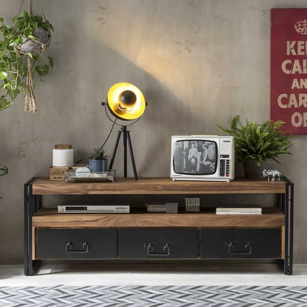 - Klasse Lowboard in Akaziefarben und Schwarz