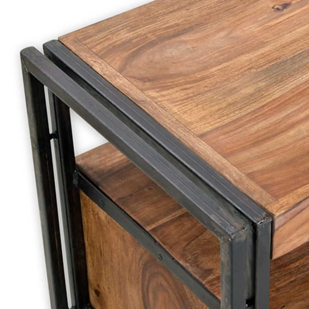 - Drei integrierte Schubladen mit Metallfronten auf Holzauszug