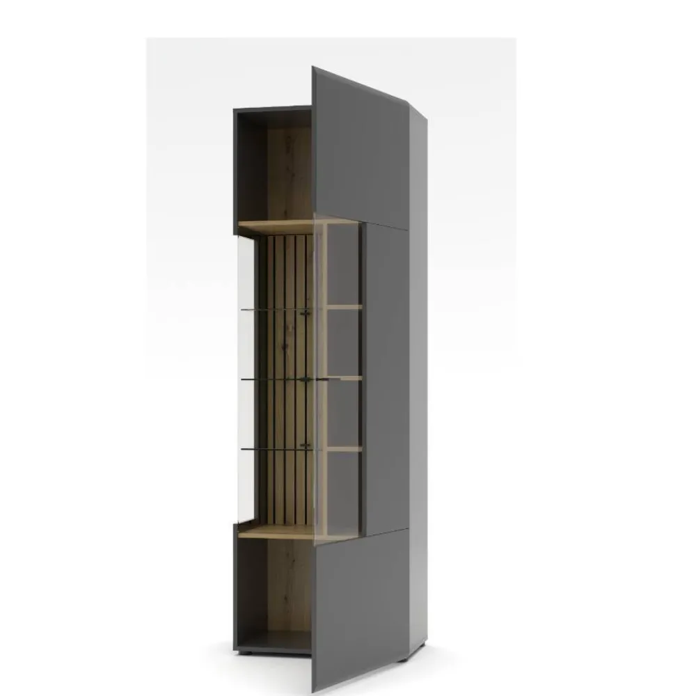 - Trendige Wohnwand in Dunkelgrau matt und Wildeichefarben