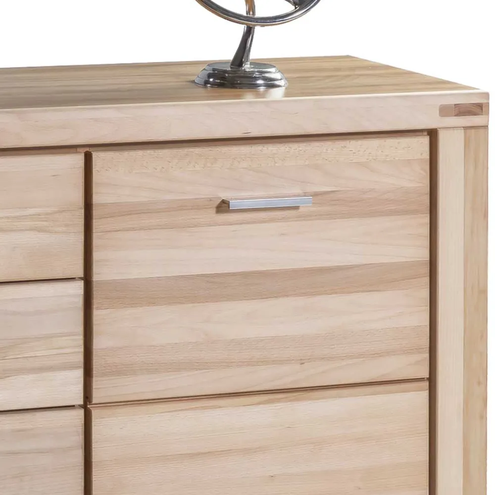 - Hergestellt aus massivem Kernbucheholz (Front, Deckplatte) und langlebiger Spanplatte (Korpus)