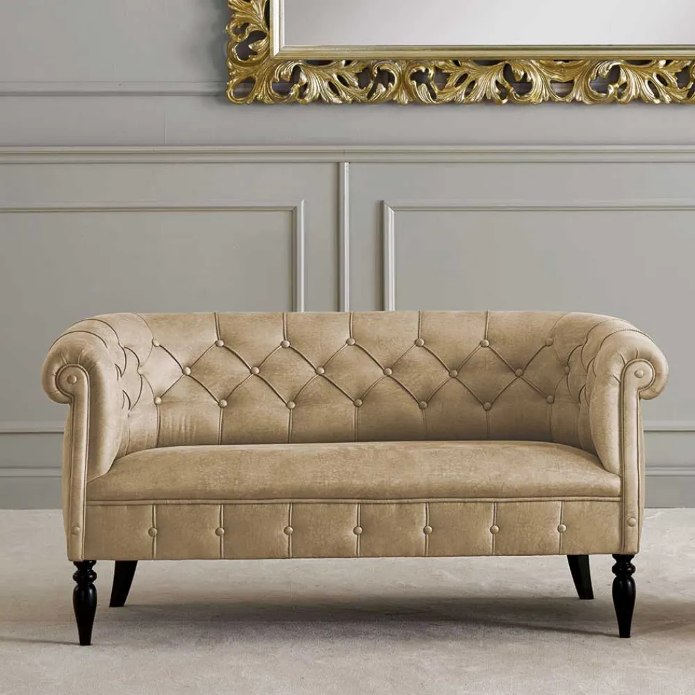 - Rückenlehne mit aufwendiger Knopfsteppung und kapitonierten Nähten