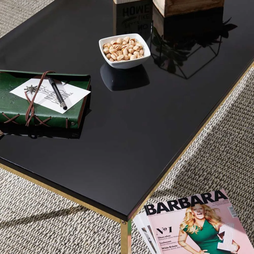 - Eleganter Couchtisch in Goldfarben und Hochglanz Schwarz