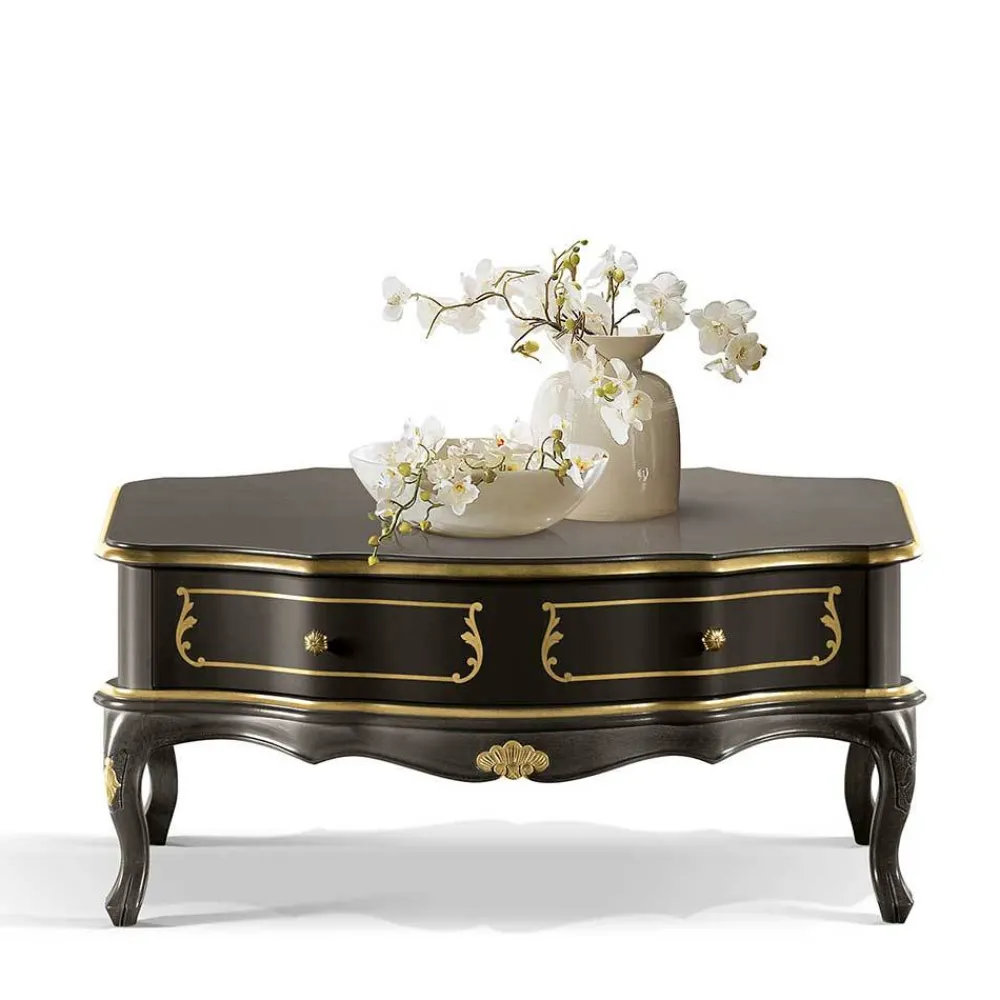 - Elegant präsentiert sich der Tisch in den Farben Gold und Dunkelbraun
