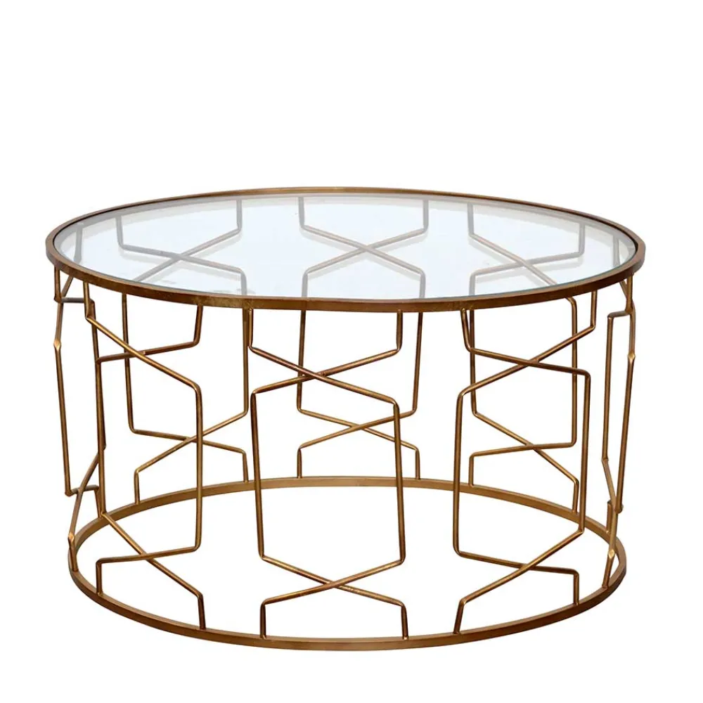 - Eleganter Couchtisch in Goldfarben und Transparent