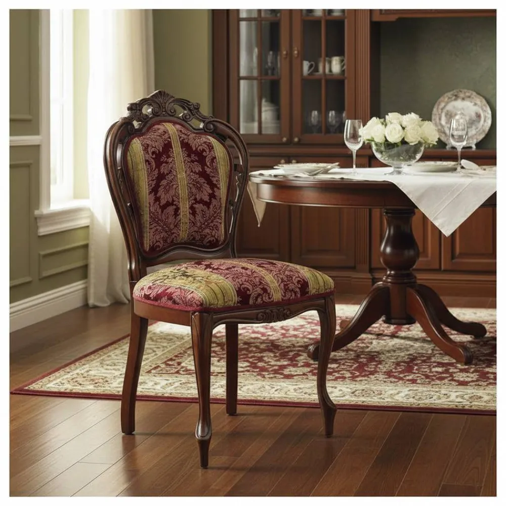 - Opulenter Polsterstuhl in Nussbaumfarben, Dunkelrot und Goldfarben