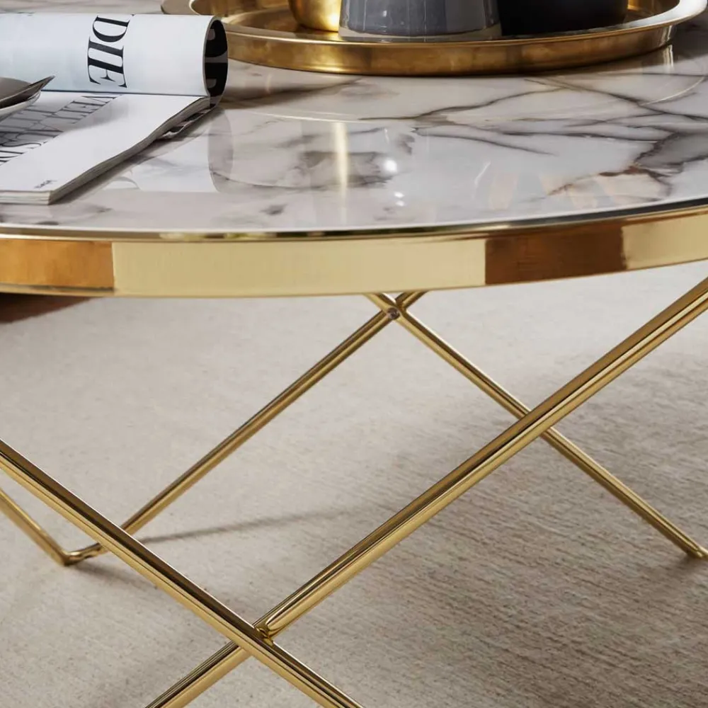 - Stilvoller Couchtisch in Weiß-Grau marmoriert und Goldfarben