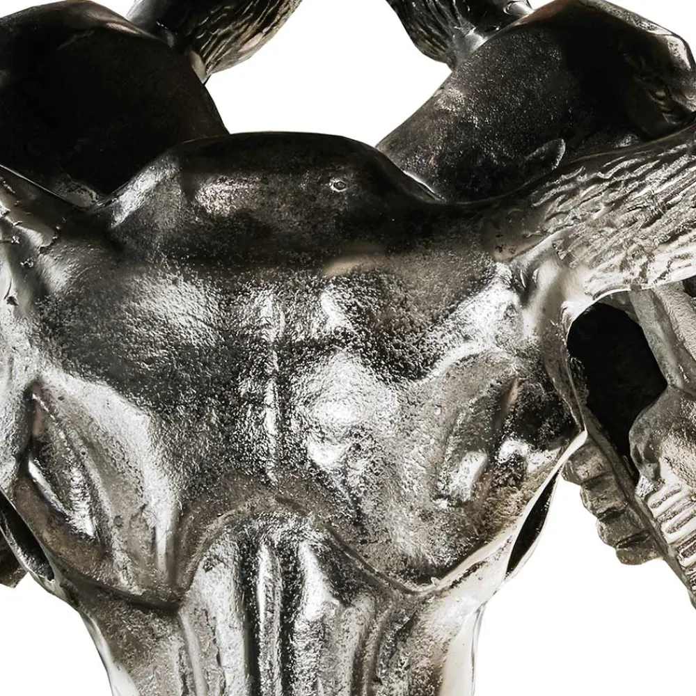 - Auffallendes Dreibein-Gestell in Form von plastischen Stierschädeln