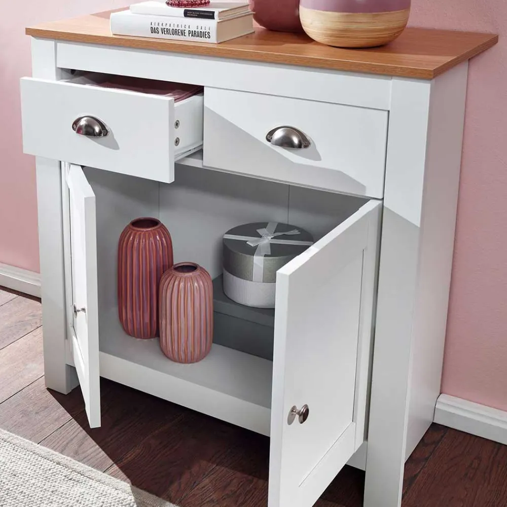 - Zwei Schubladen mit Metallauszug, Innenmaße: BxHxT: je ca. 26,5x9x29 cm