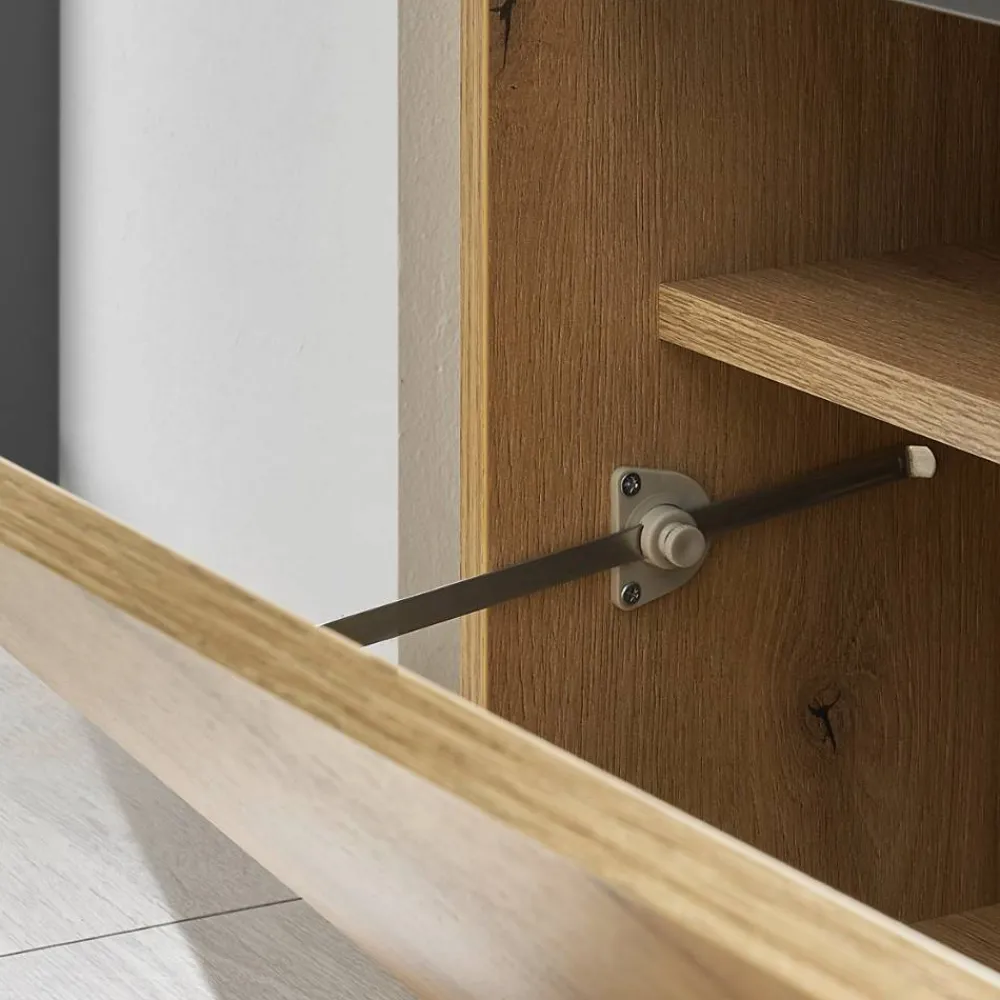 - Eine Schuhklappe, innen vier Fächer, Platz für bis zu acht Paar Schuhe