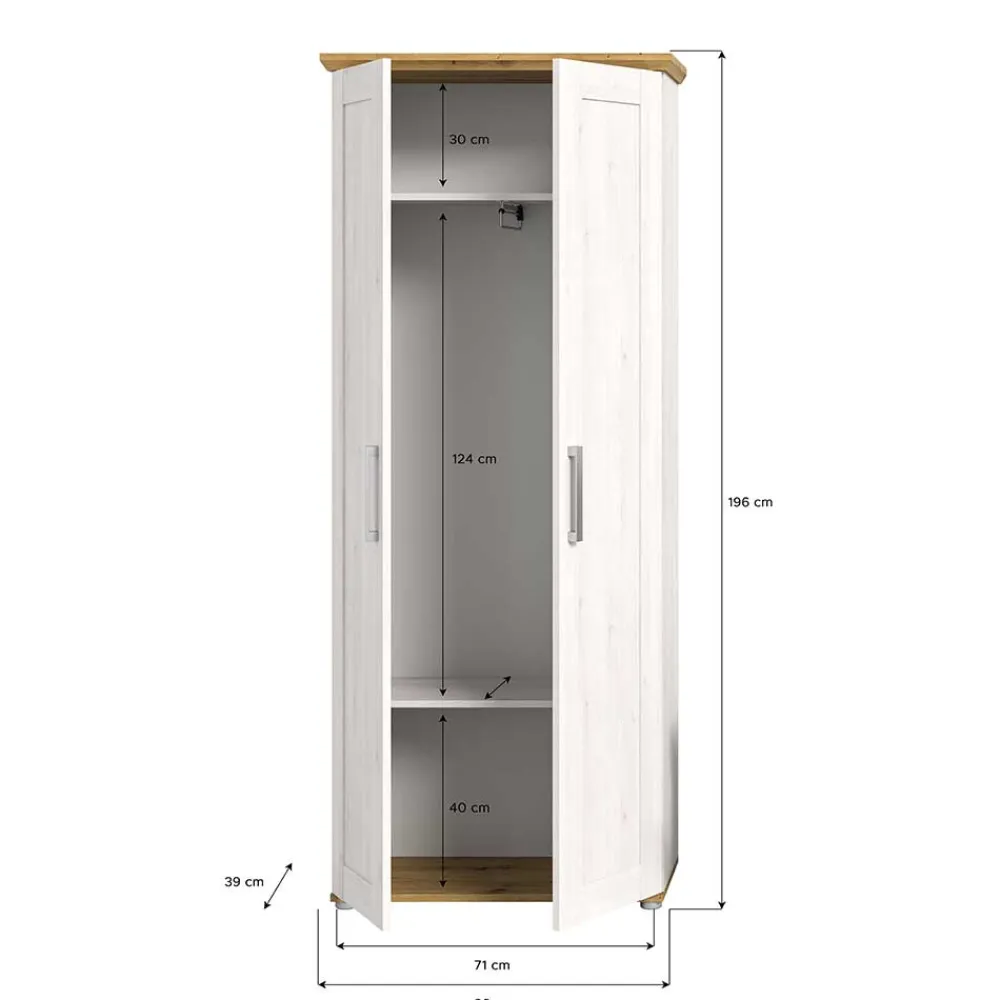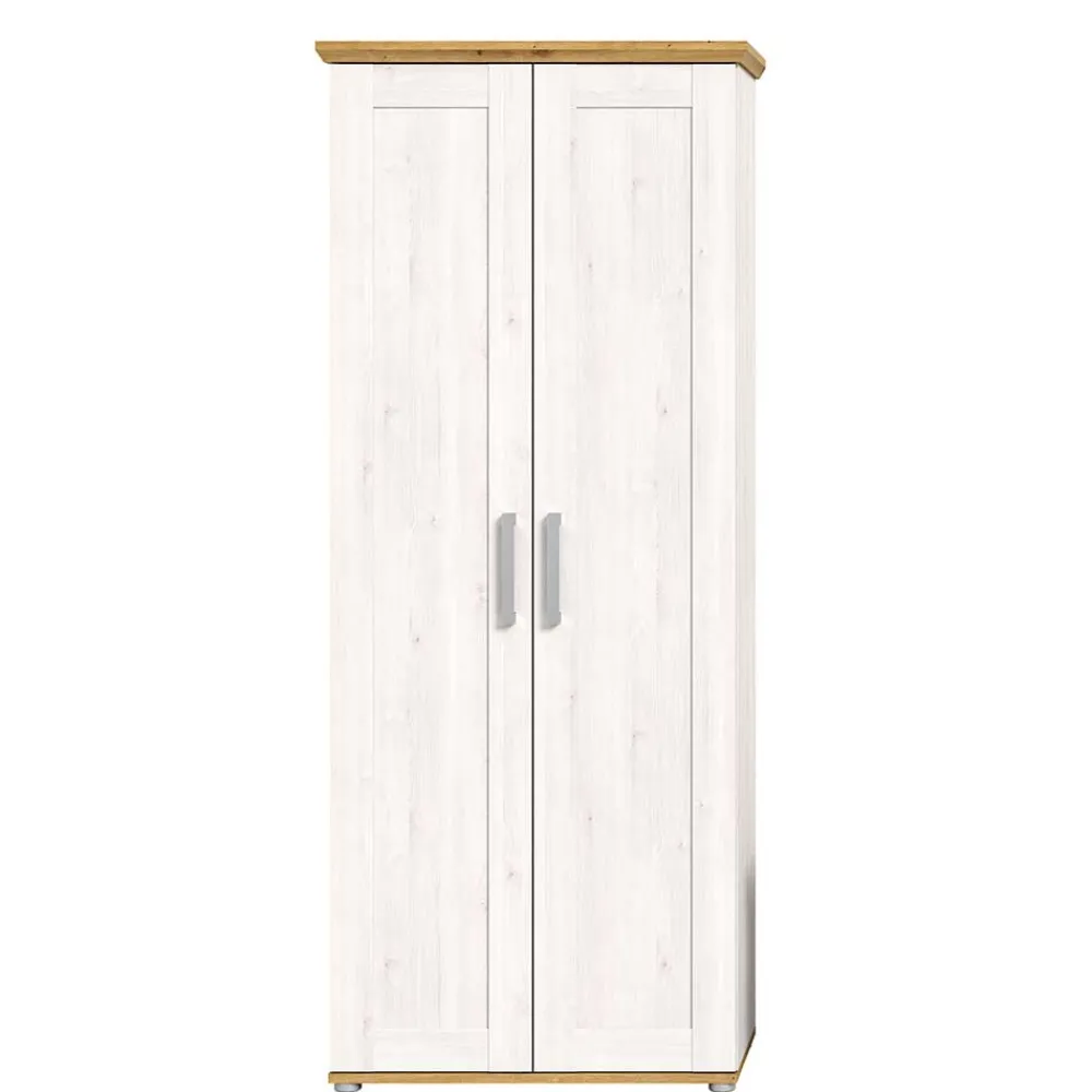 - Wohnlicher Garderobenschrank in Holzoptik Lärche Weiß und Wildeichefarben