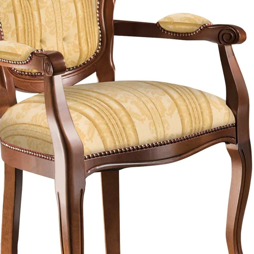 - Charmanter Stuhl in Gelb, Cremeweiß und Nussbaumfarben