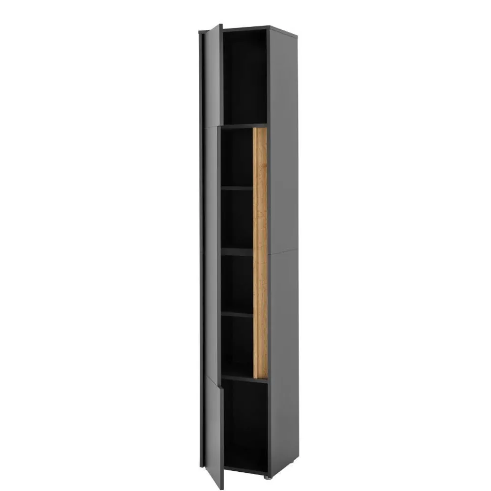 - Schmaler Bad Hochschrank in Anthrazit und Wildeichefarben