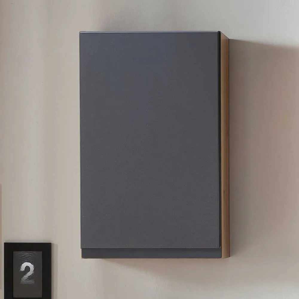 - Praktischer Bad Hängeschrank in Dunkelgrau matt und Wildeichefarben