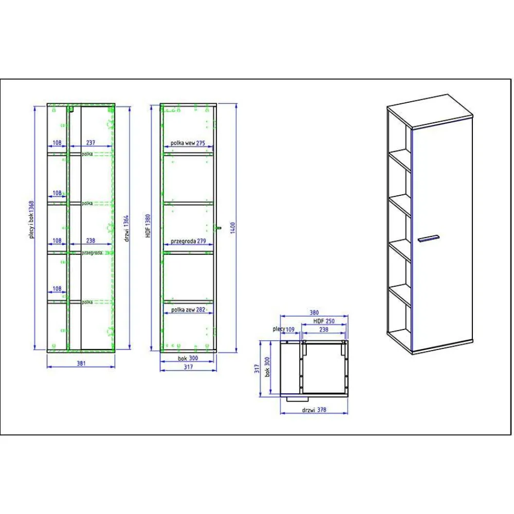 - Maße (BxHxT): 38x140x32 cm