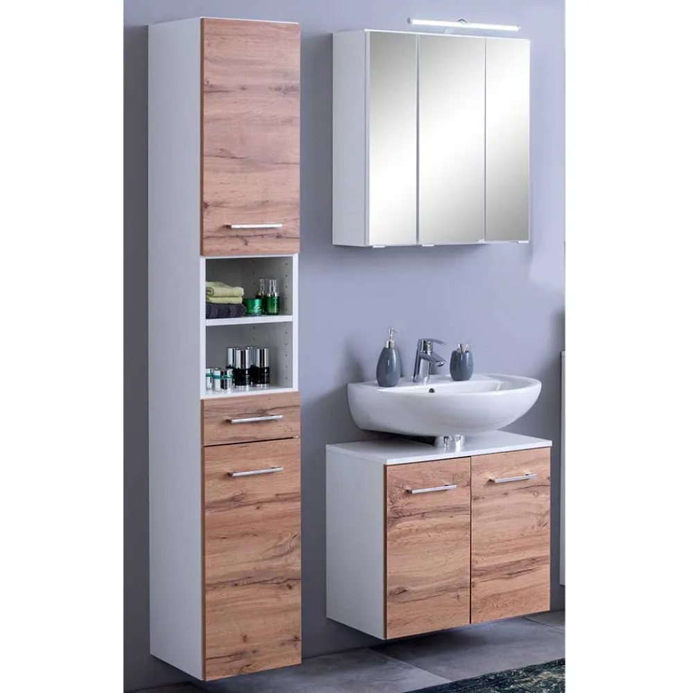 - Wirkungsvolles Badezimmer Set in Weiß und Wildeichefarben