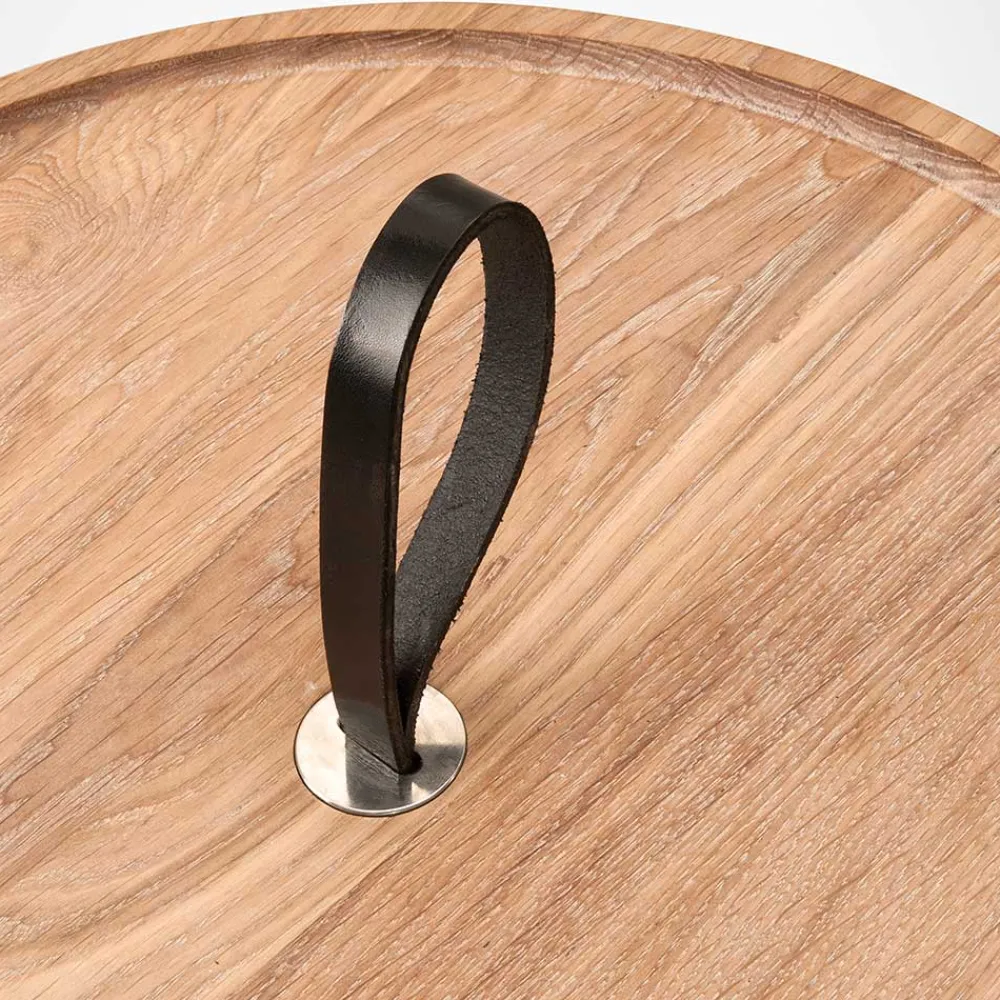 - Schlaufe aus echtem Leder, praktisch beim Versetzen des Tisches