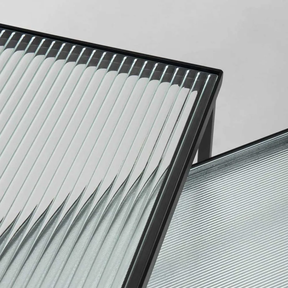 - Tischplatten aus unterschiedlich strukturiertem Glas