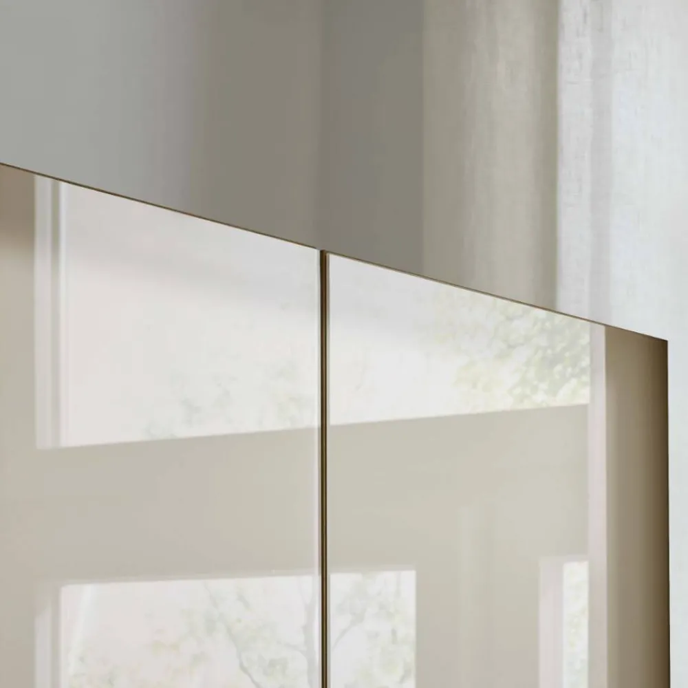 - Acht Drehtüren mit Soft Close Metallscharnieren, Bauchbinden aus Massivholz, äußere Türen aus Massivholz, weiße Fronten mit Glas beschichtet