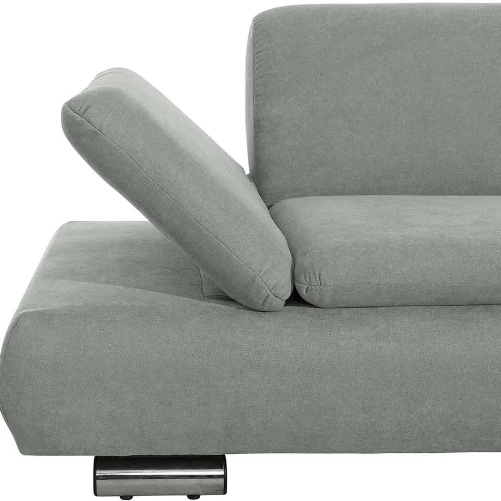 - Schickes Ecksofa in Hellgrün und Chromfarben