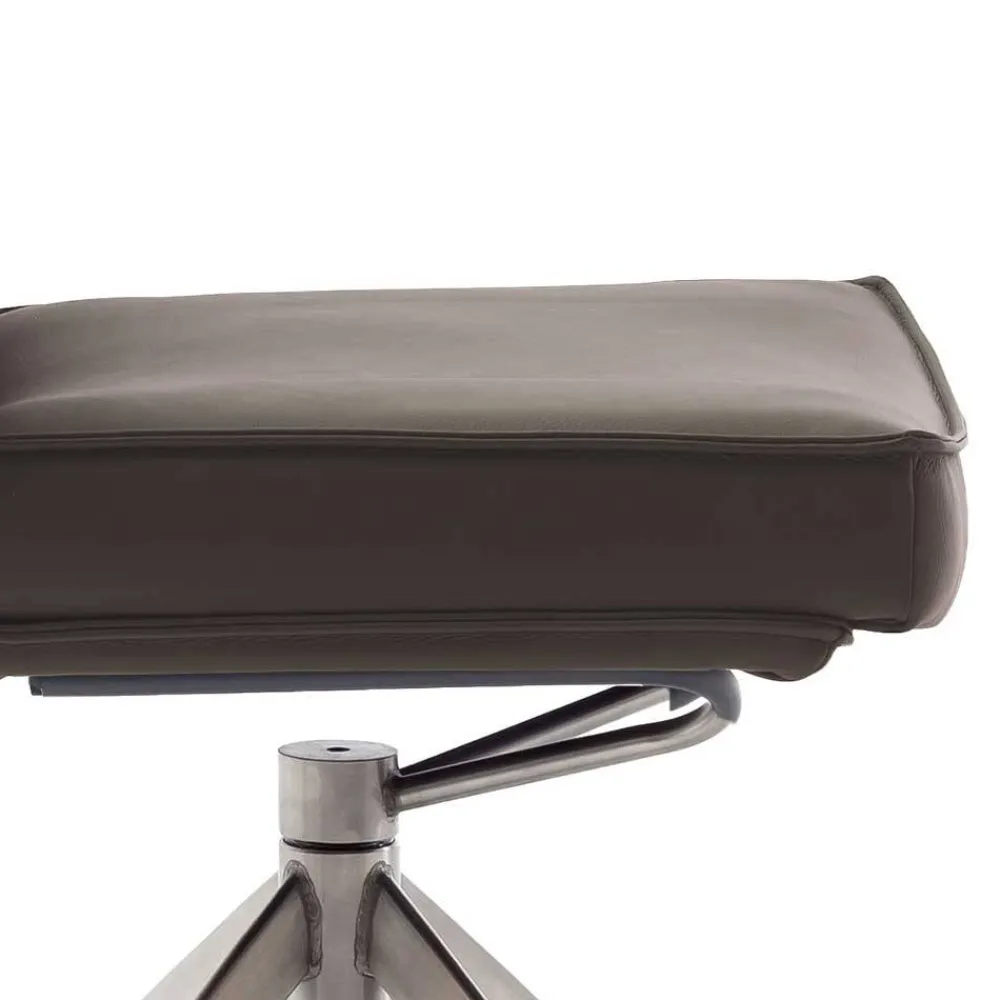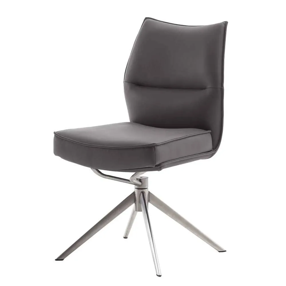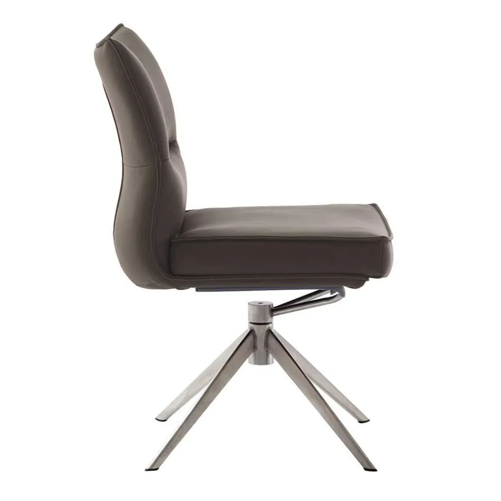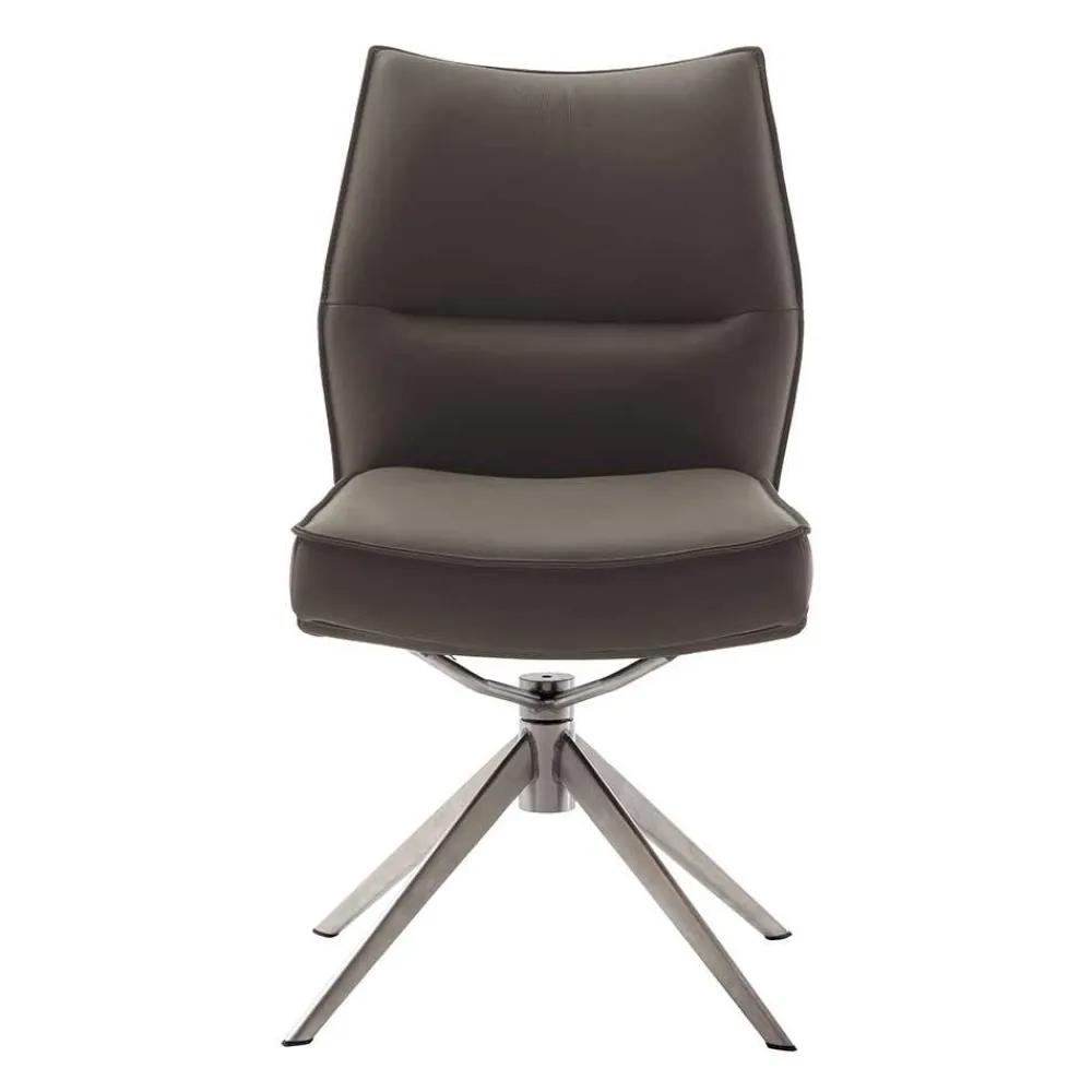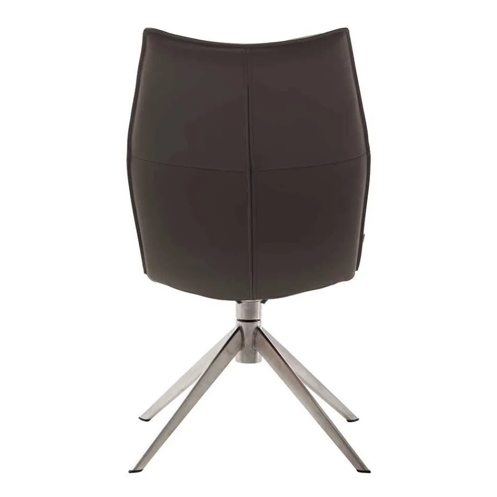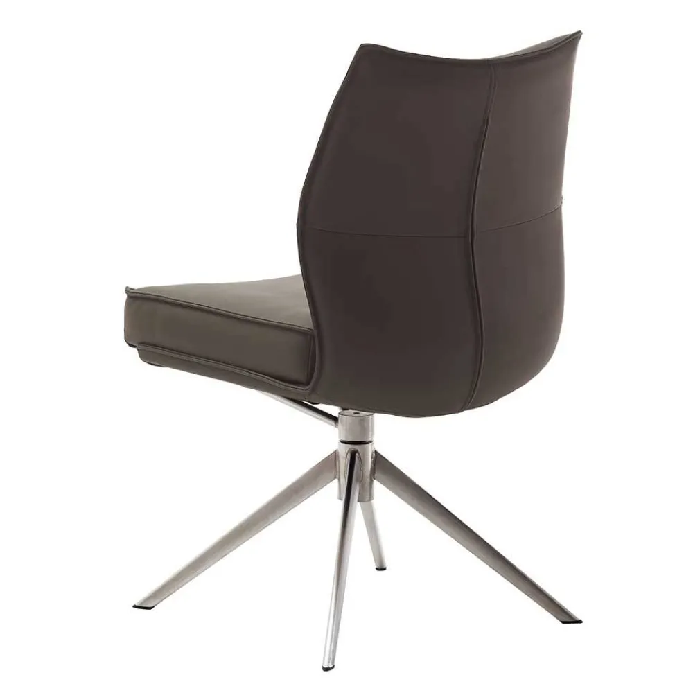- Bequeme Stühle in Dunkelbraun und Edelstahlfarben
