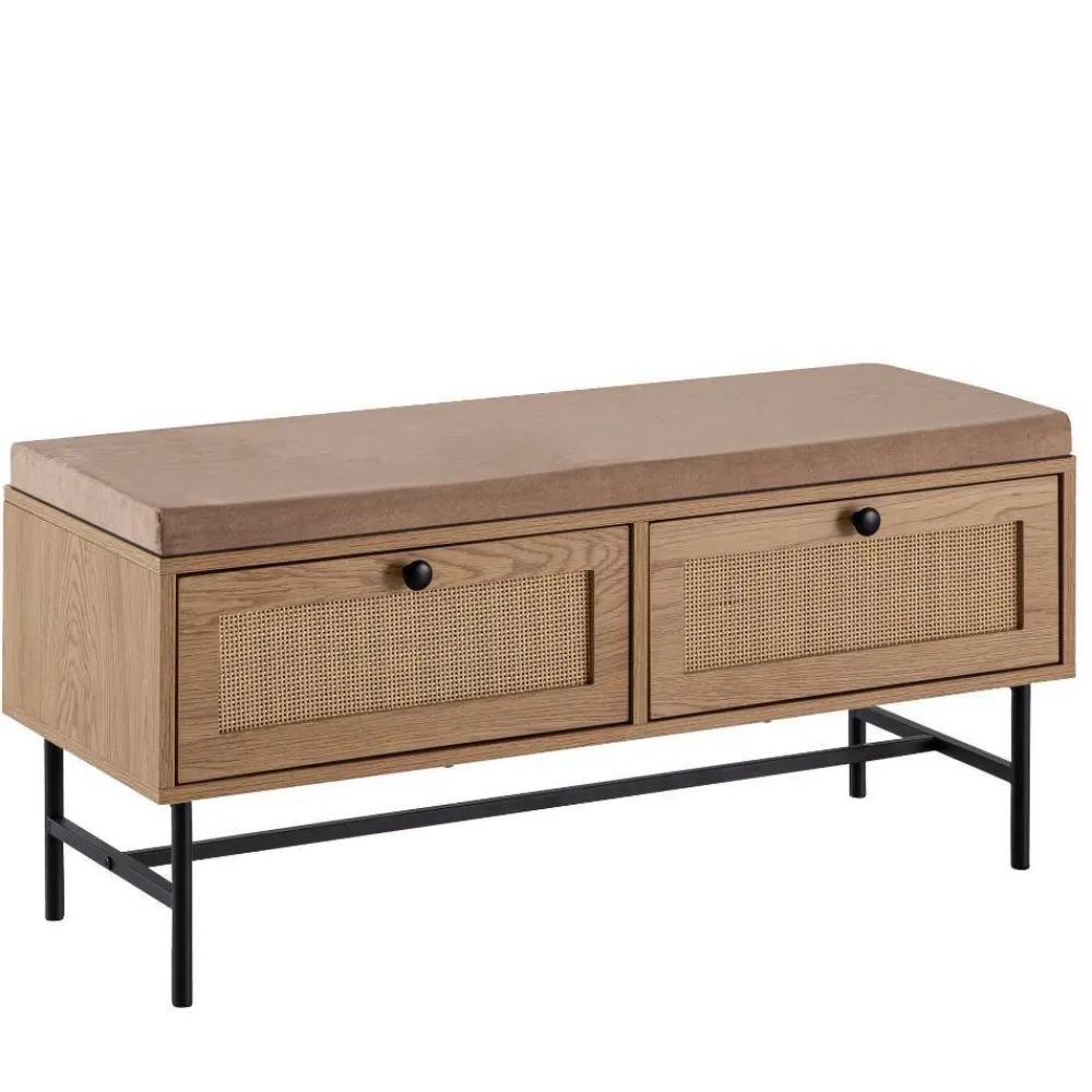 - Ansprechende Garderobenbank in Eichefarben, Beige und Schwarz