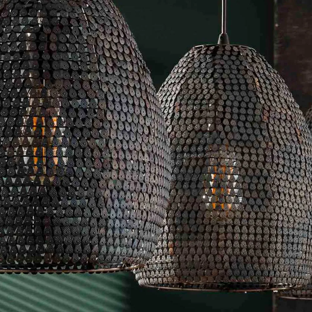 - Drei halbtransparente, perforierte Lampenschirme mit einem Durchmesser von je 28 cm