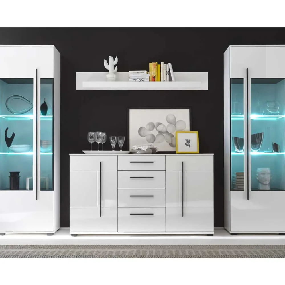 - Schlichte Wohnzimmer Schrankwand in Hochglanz Weiß