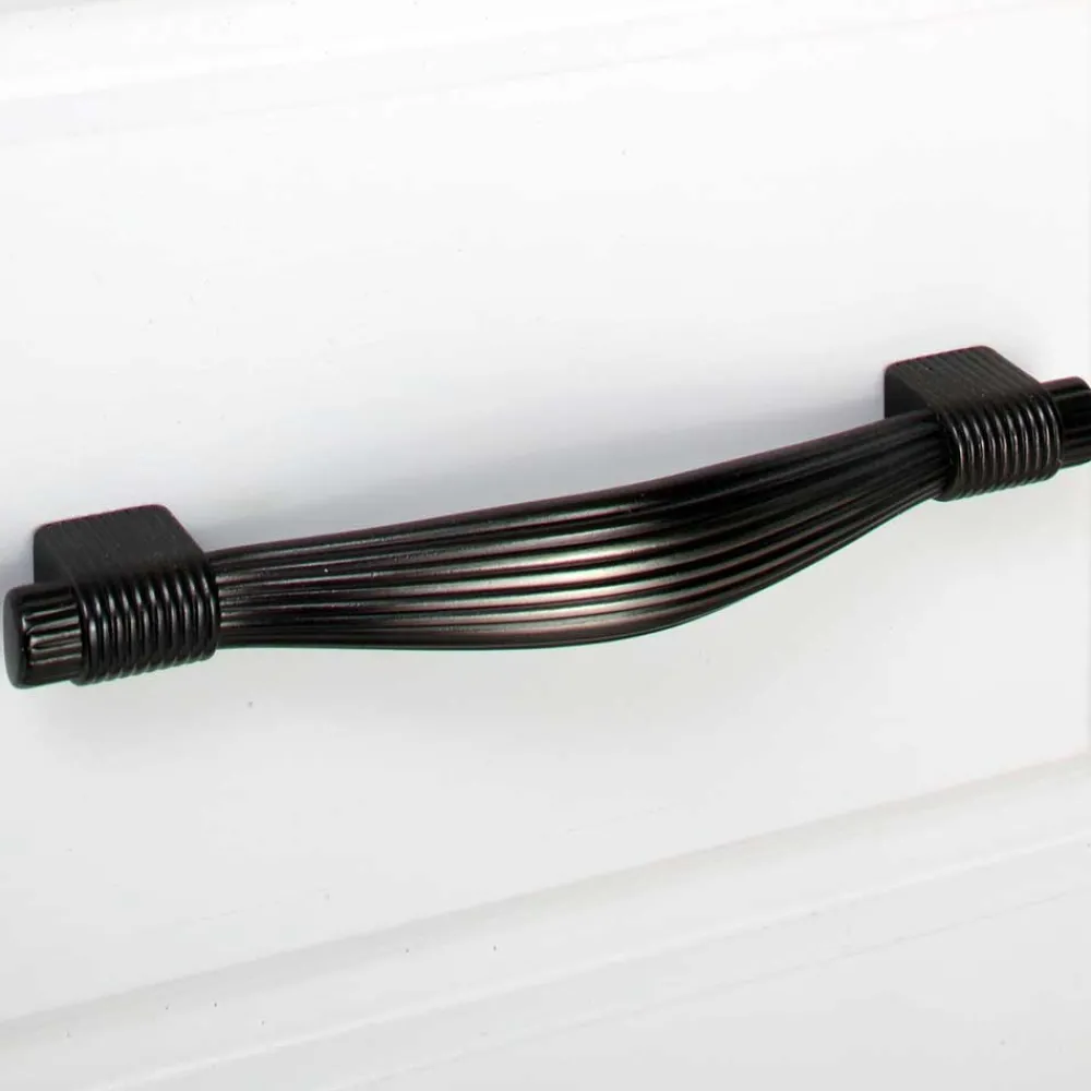 - Dekorative, schwarze Metallgriffe in Bügelform