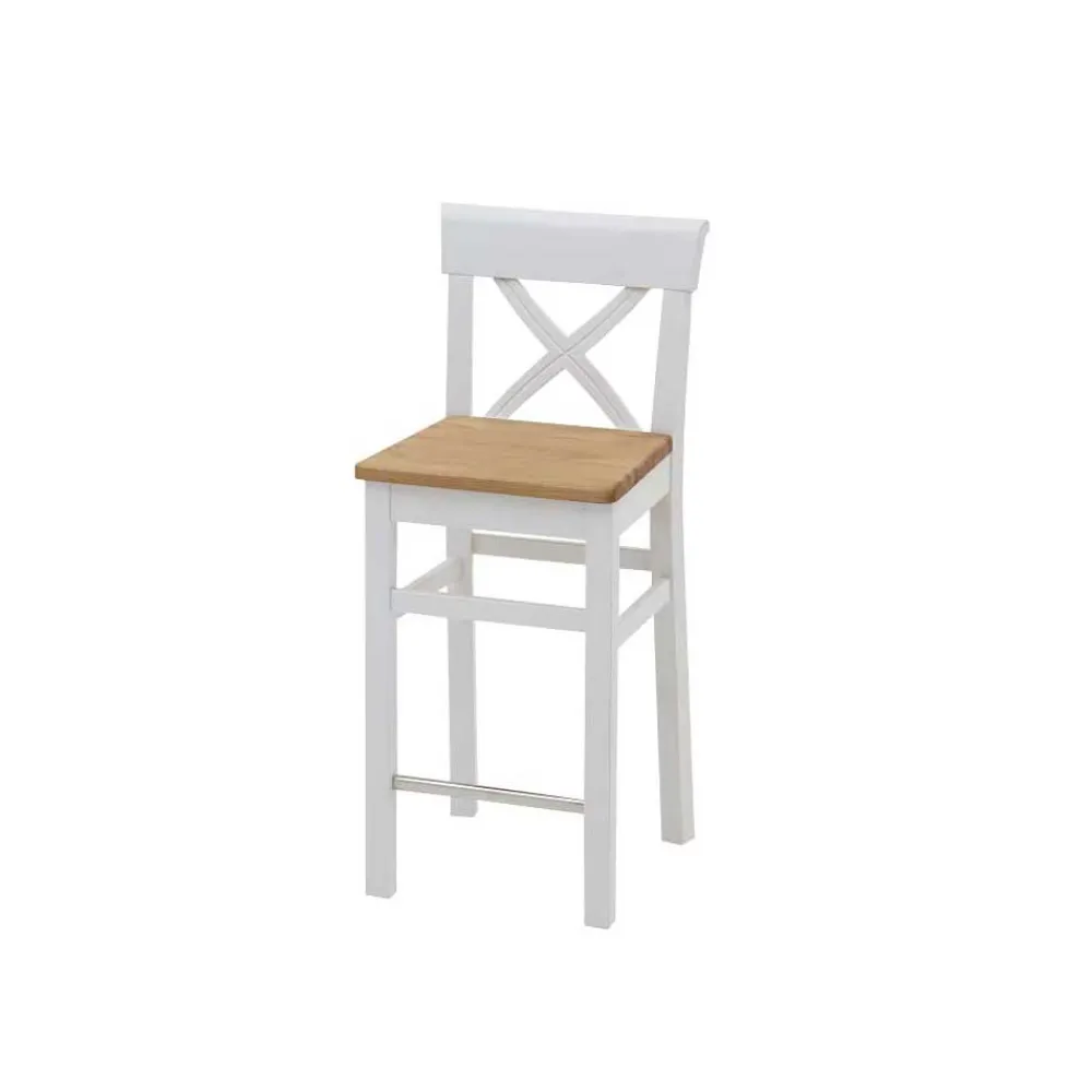 - Formschöner Barhocker in Weiß und Kiefer laugenfarbig