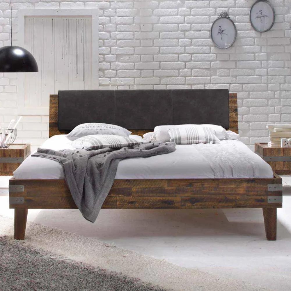 - Attraktives Kopfteil mit Polster aus Kunstleder in Anthrazit (Nutzschicht: 100% Polyurethan, Grundschicht: 60% Polyester, 40% Baumwolle)
