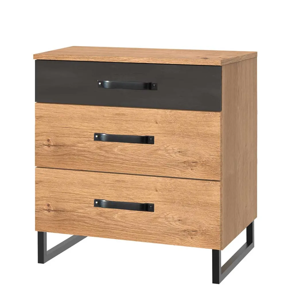 - Stylische Nachtkommode in Eichefarben und Schwarzgrau