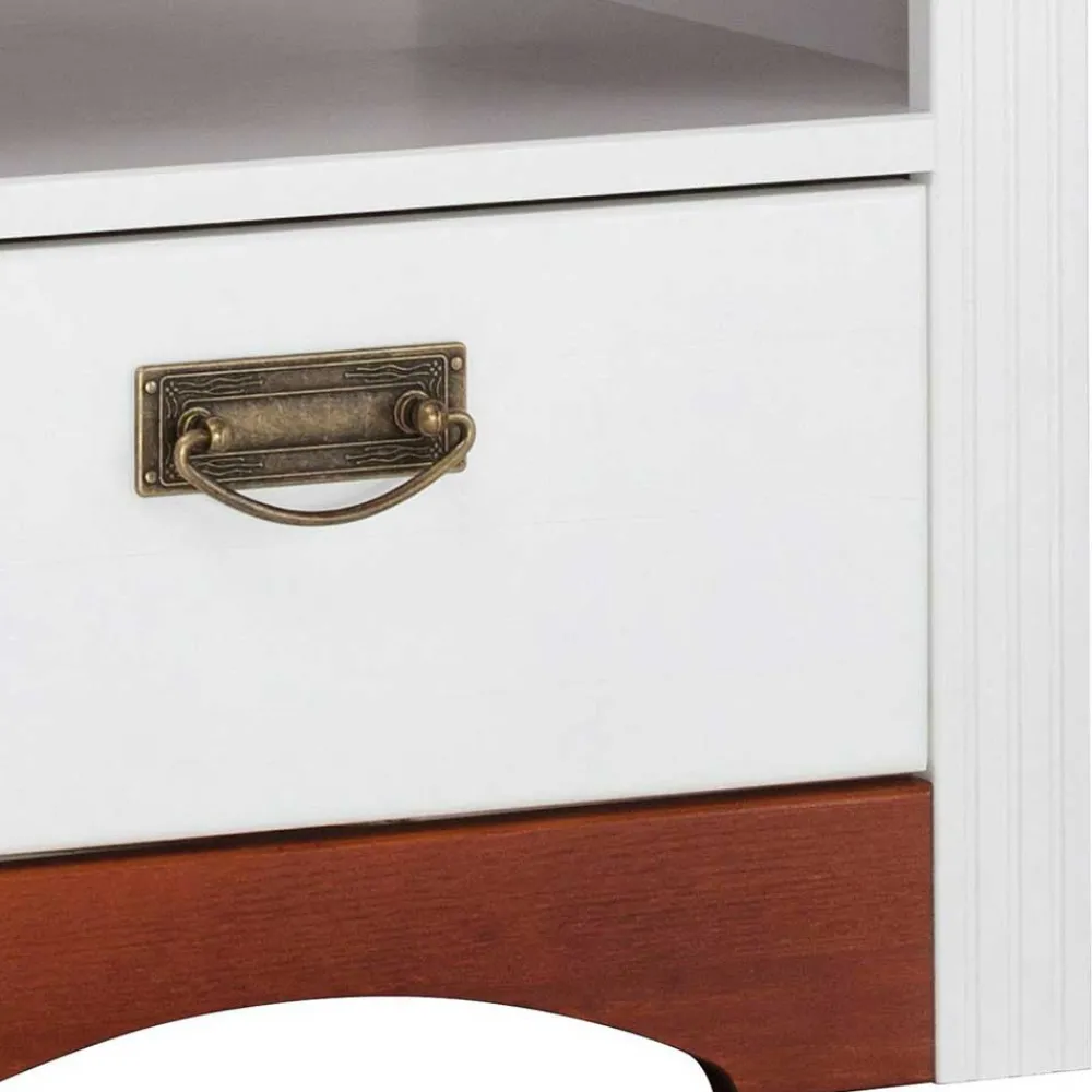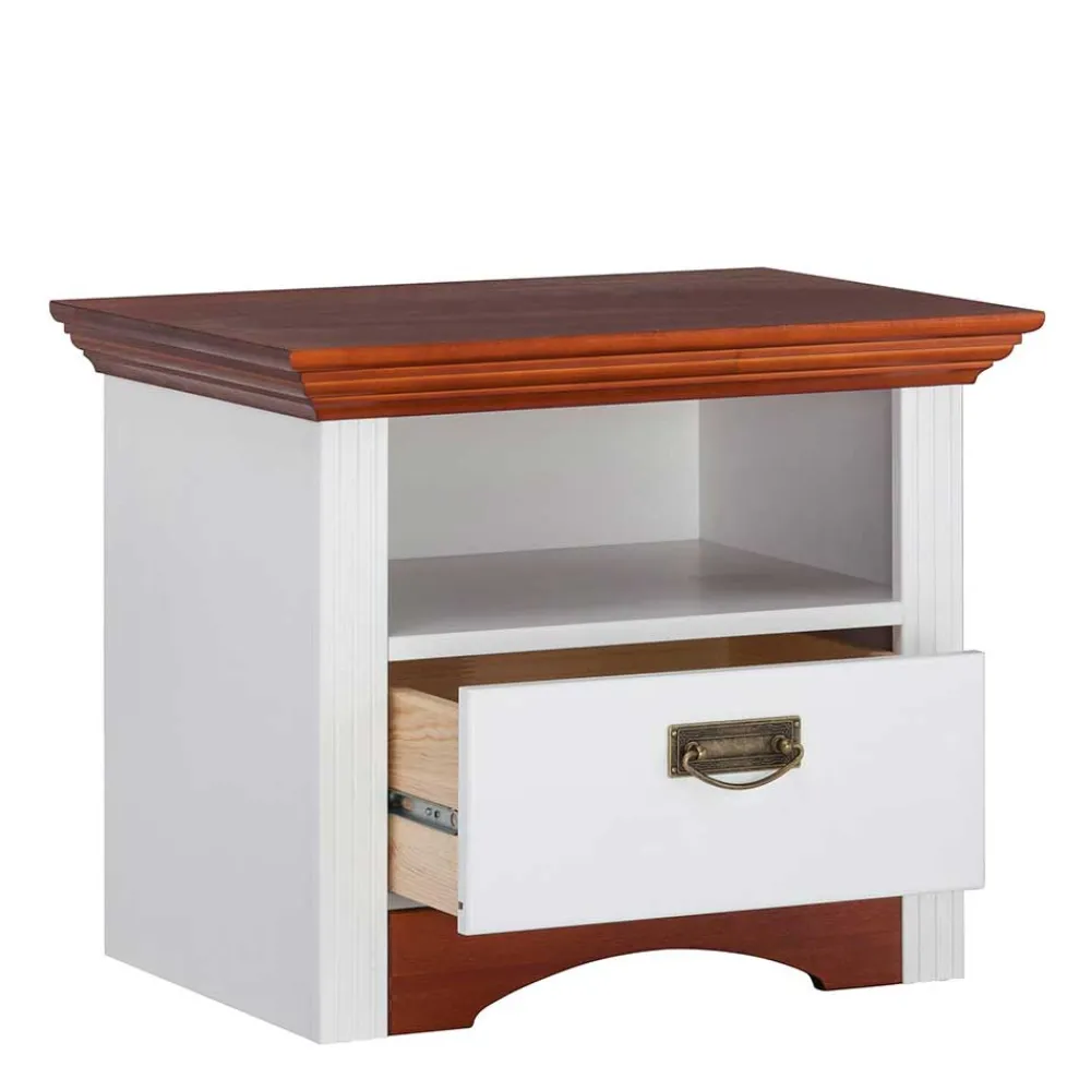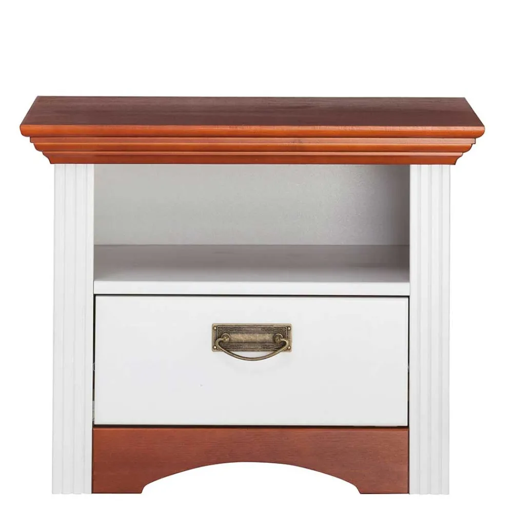 - Schicke Nachtkommode in Weiß und Kirschbaumfarben