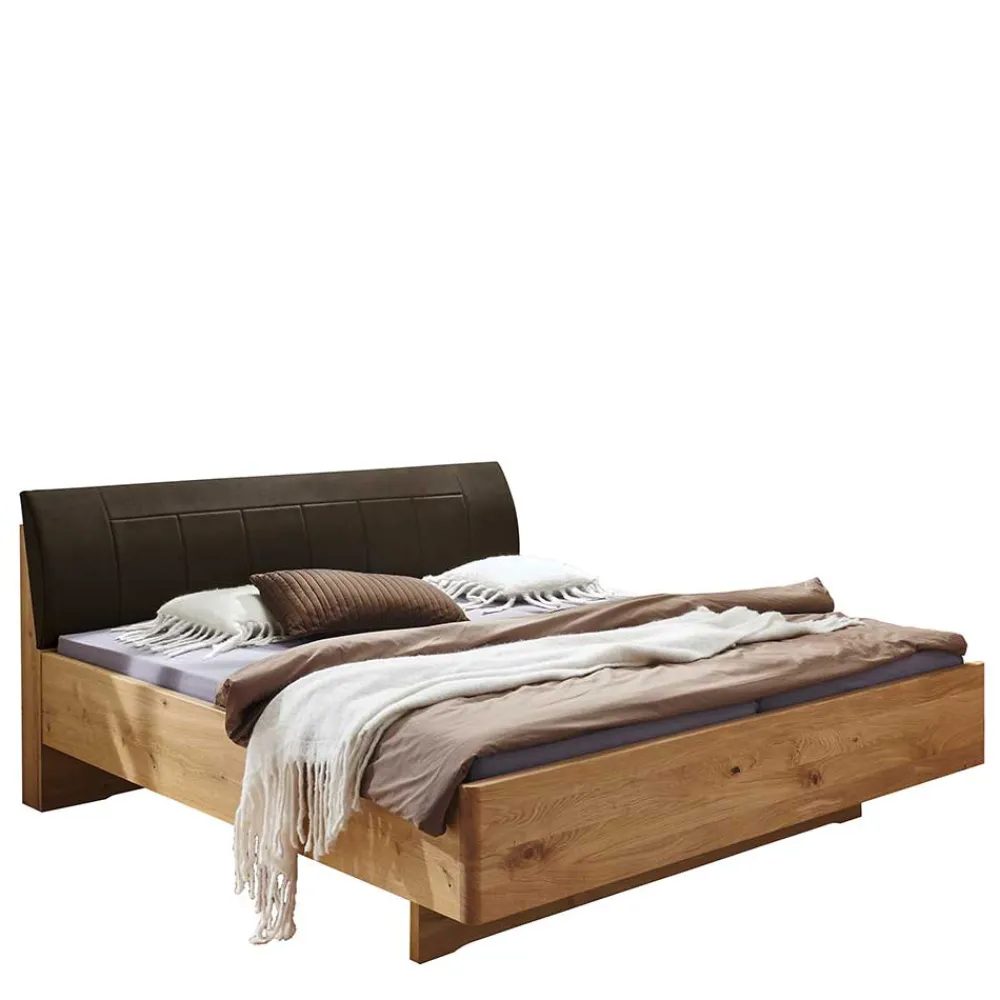 - Komfortables Bett in Eiche Bianco und Dunkelbraun