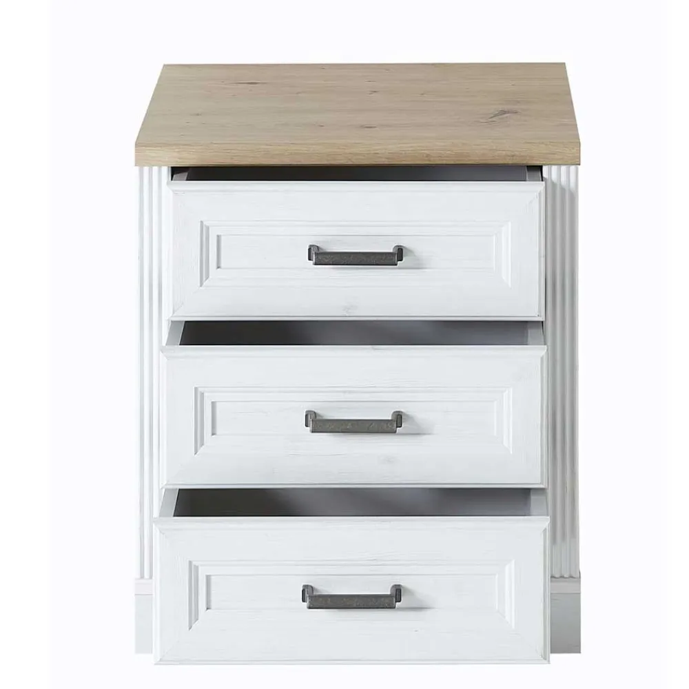 - Attraktiver Rollcontainer in Pinie Weiß und Eichefarben