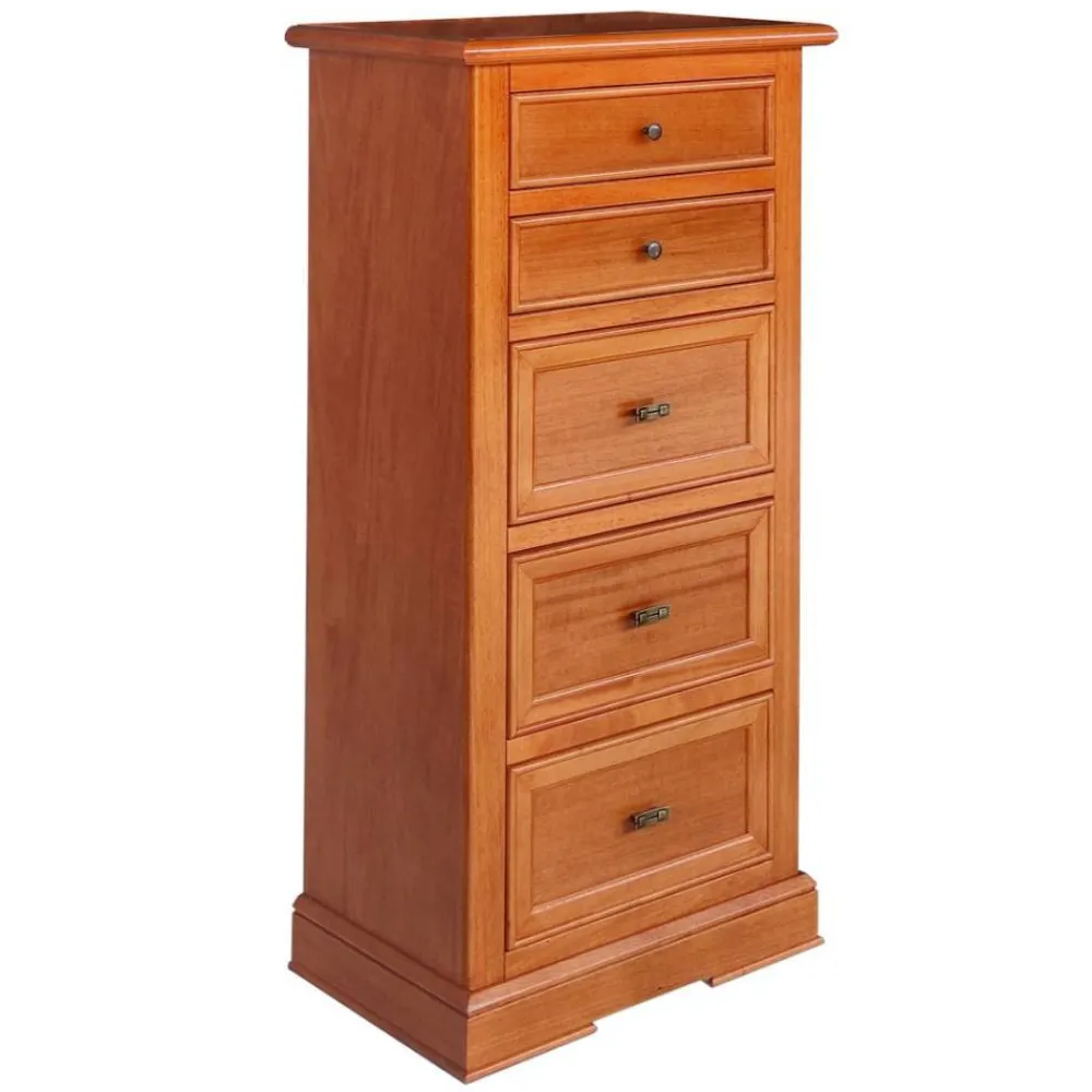 - Fünf Schubladen mit Holzauszug, Innenmaße: BxHxT: ca. 40×9/19×30 cm