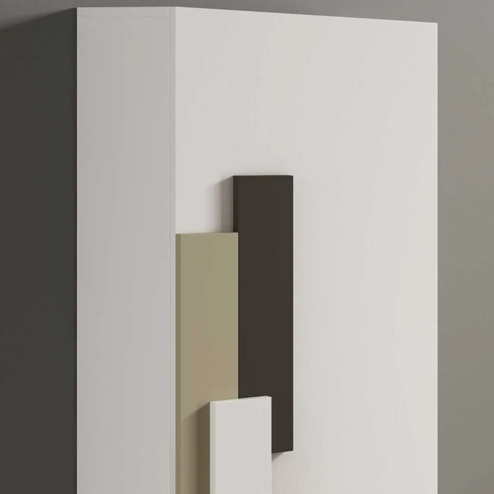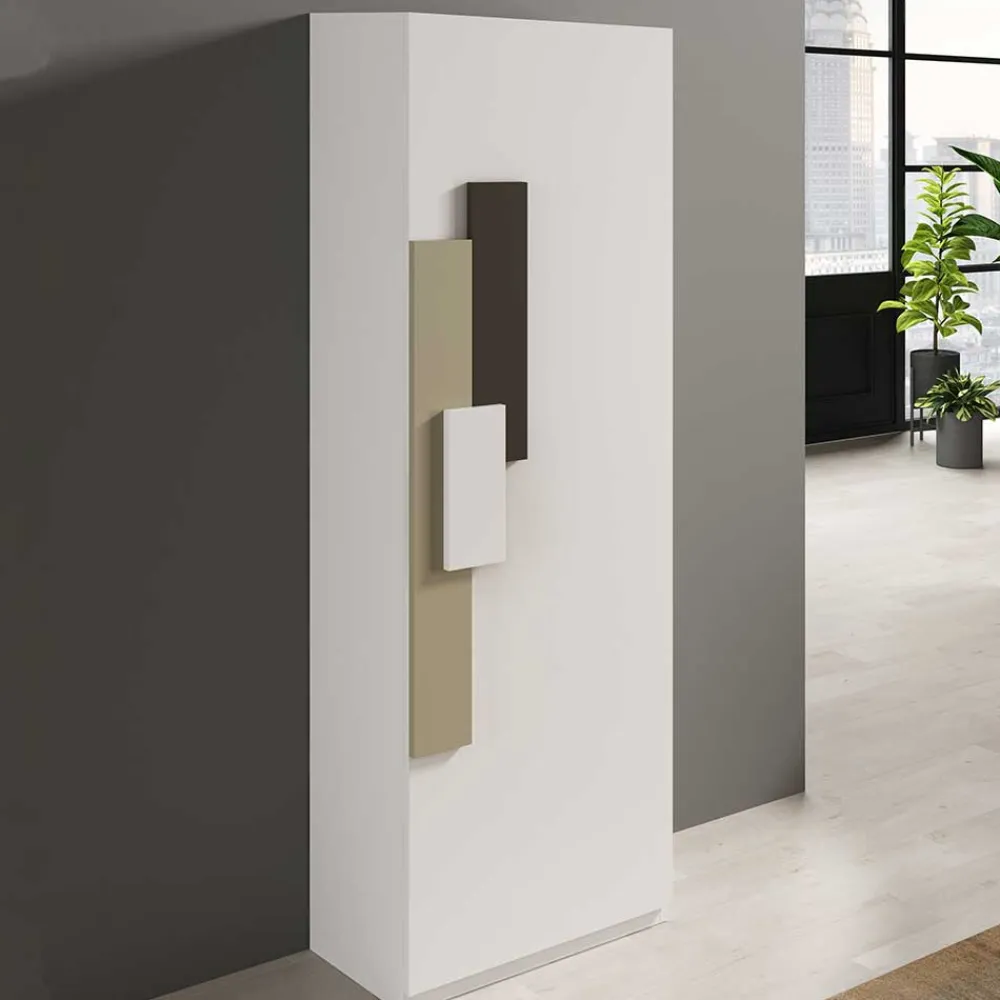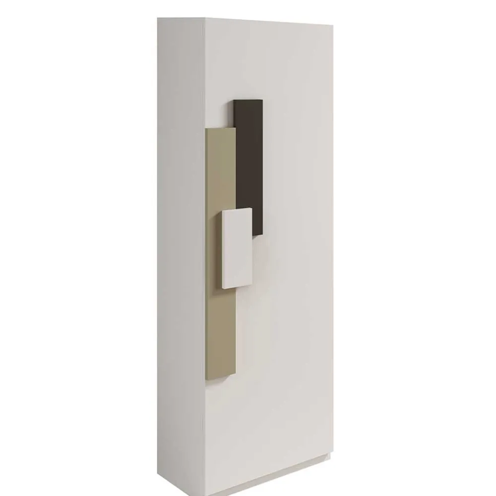 - Hoher Schuhschrank in Weiß, Beige und Schwarz-Grau
