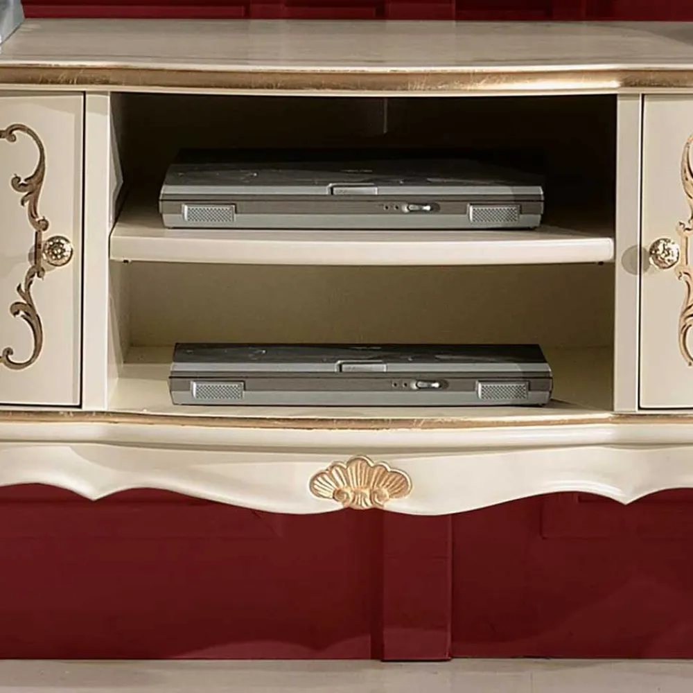 - Beeindruckendes TV-Lowboard in Weiß und Goldfarben