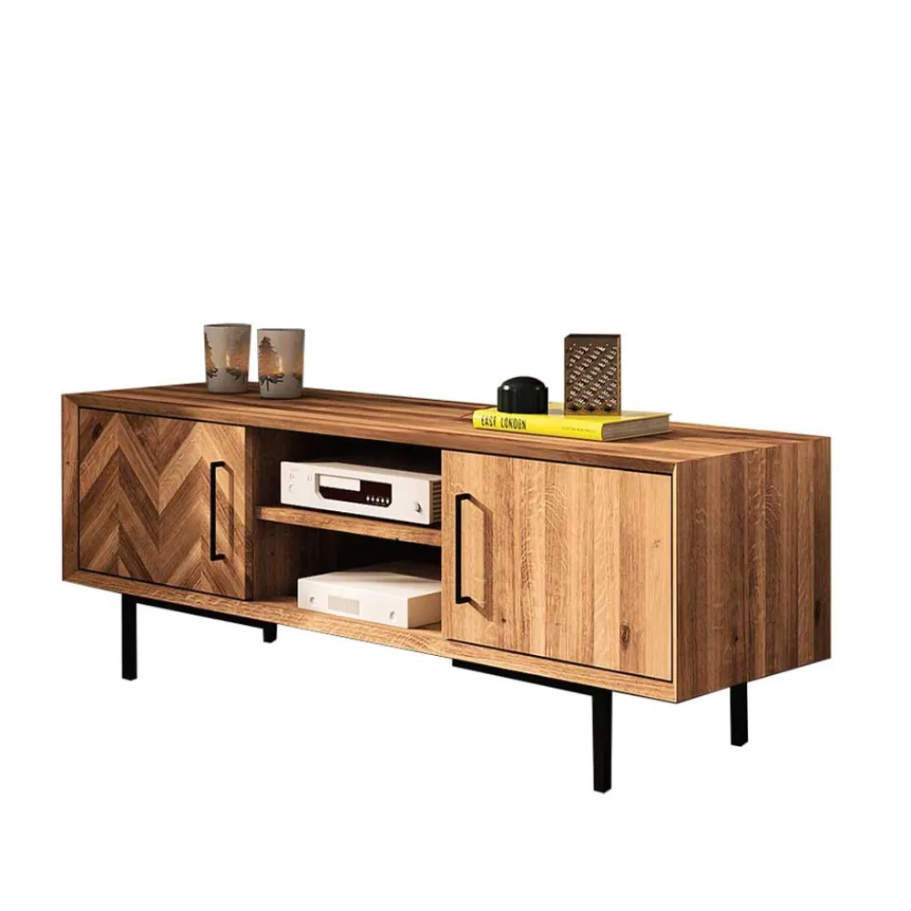 - Exklusives TV Board in Wildeichefarben und Schwarz