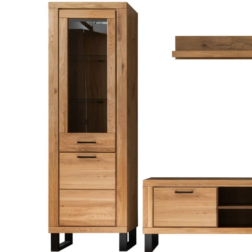 - Dekorative Wohnwand in Wildeichefarben und Schwarz